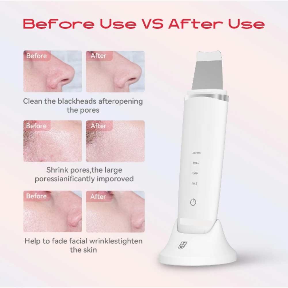 Using powerful ultrasonic vibrations and gentle EMS technology, this sleek, easy-to-use tool lifts away dirt, oil, blackheads, and dead skin cells hiding beneath the surface. You'll feel the difference after just one use — softer skin, tighter pores, and a smoother, healthier glow.